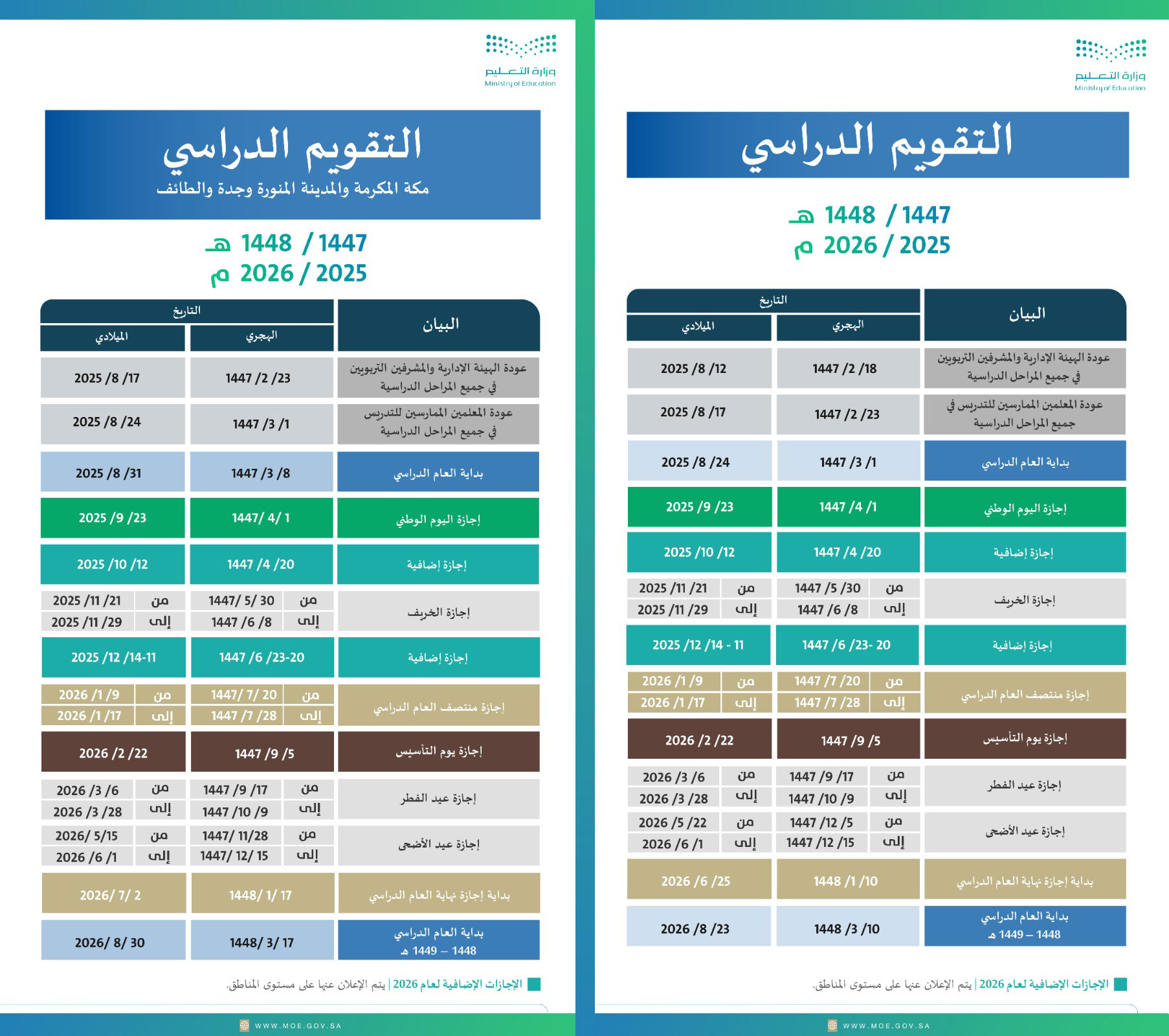التقويم الدراسي للتعليم العام ( 1447 - 1448 ) هـ